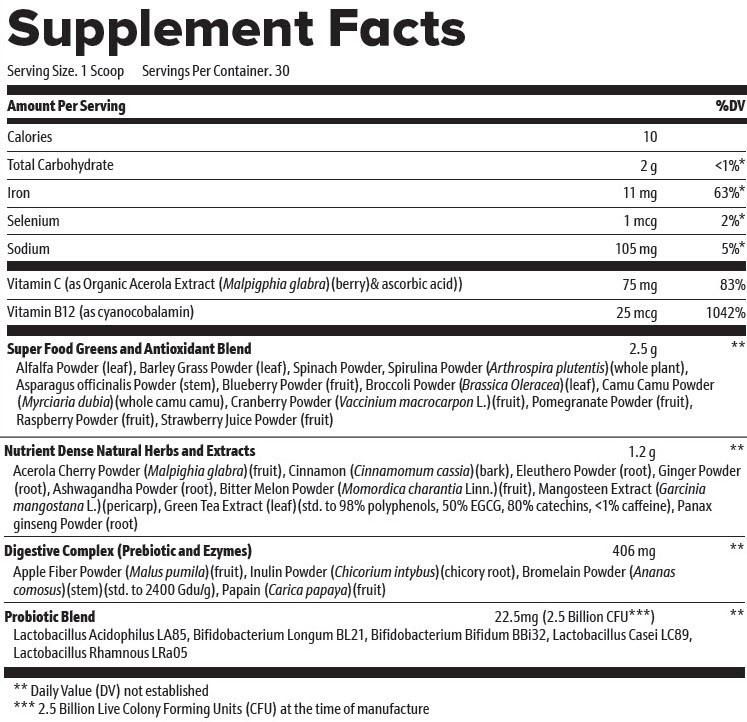 And Many Other Nutrients-Rich Ingredients like Inulin, Ginger, Alfalfa Leaf, Barley Grass, Spirulina & more